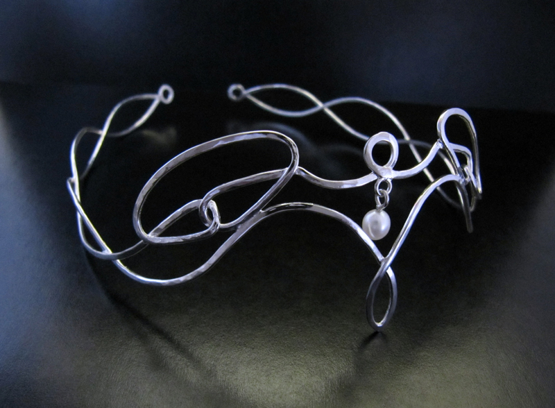 Pièce unique en fil d’argent martelé.