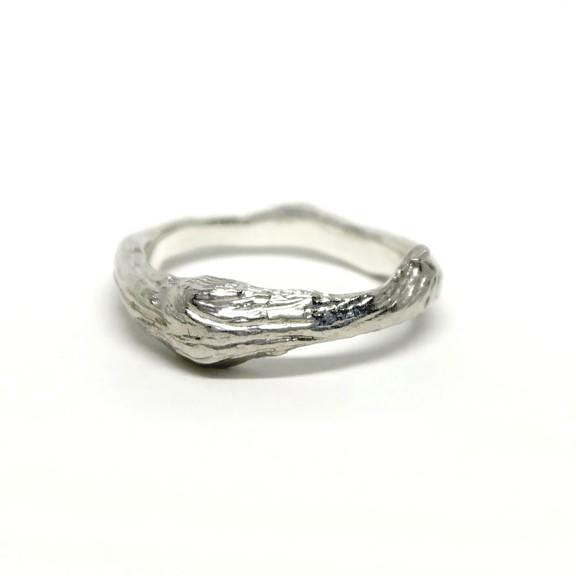 Bague branche en argent. Aussi disponible en différents alliages d’or (gris, rose ou jaune) sur commande. Devis sur demande. Options d’ajout d’une pierre de votre choix.