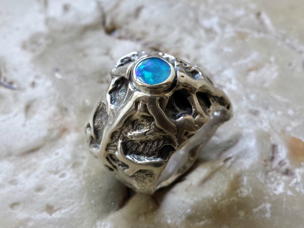 Ma terre intérieure… Bague végétale en argent 925 et opale doublet noire d’Australie. Modèle de bague disponible sur commande et sur mesure avec une pierre fine ou précieuse de votre choix.