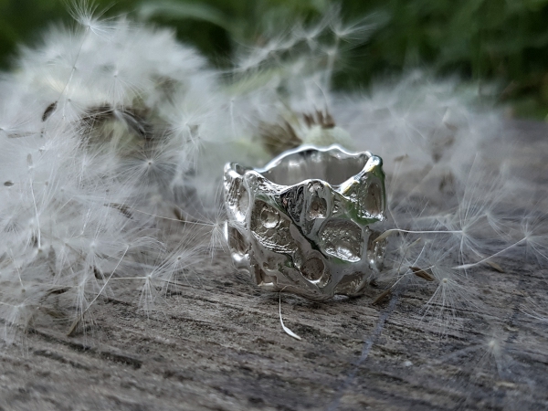 Un bijou inspiré de la Nature avec texture végétale. Petite série. Aussi disponible en différents alliages d’or 750 jaune, rose ou gris. Option d’ajout d’une pierre fine ou précieuse de votre choix.