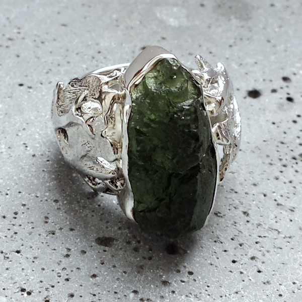 La moldavite est un verre amorphe de faible dureté (et non un cristal) formé par l’impact d’une météorite il y a 14.8 millions d’années.