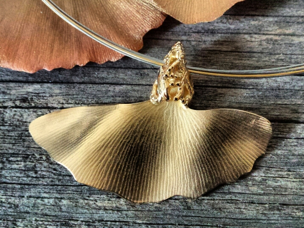 Texture végétale. Façonné à la main sur la cheville de l’établi, avec une feuille de Ginko véritable.
