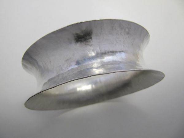 Réalisé entièrement à la main, forgé aux marteaux. Soulèvement et abaissement de courbes par martelage sur différentes formes en acier. La transformation du métal par le feu, le geste et l’outil. Pierres fines et précieuses en option.