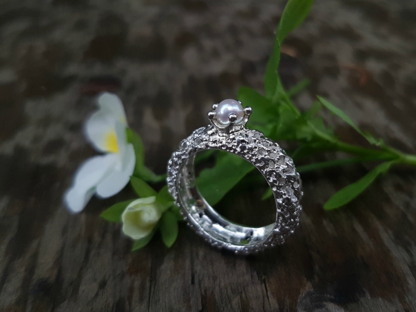 Ajouré et travaillé avec une texture réalisée manuellement.