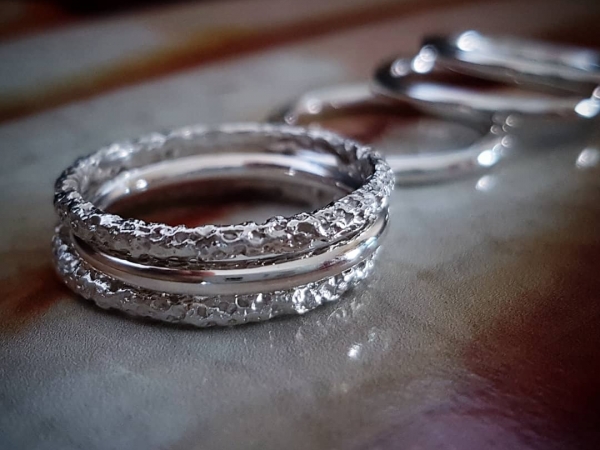 Anneaux fins lisses ou structurés, aspect corallien, en argent 925. À combiner ensemble.