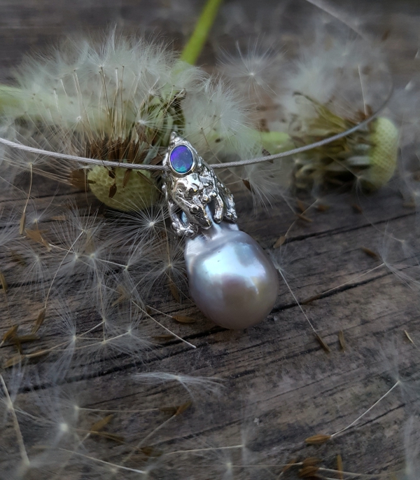 Argent 925, Collier câble argent 925, Opale Boulder d'Australie, Perle baroque