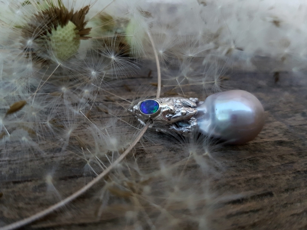 Le féminin mis en lumière par de précieuses matières. Petite série. Aussi disponible en différents alliages d’or 750 jaune, rose ou gris. Chaque perle, chaque opale est unique par sa couleur et sa forme. Fermoir «S».