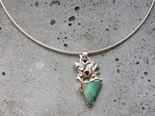 Argent 925, Opale Boulder d'Australie, Tourmaline rose D 4 mm