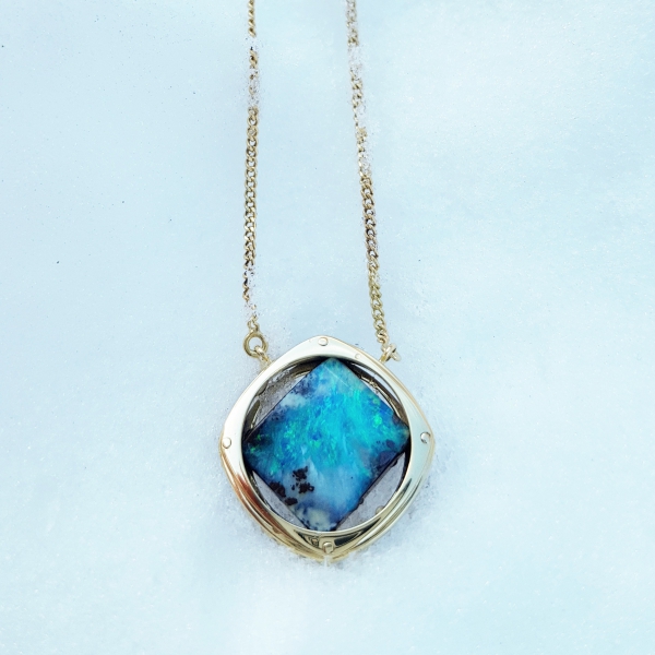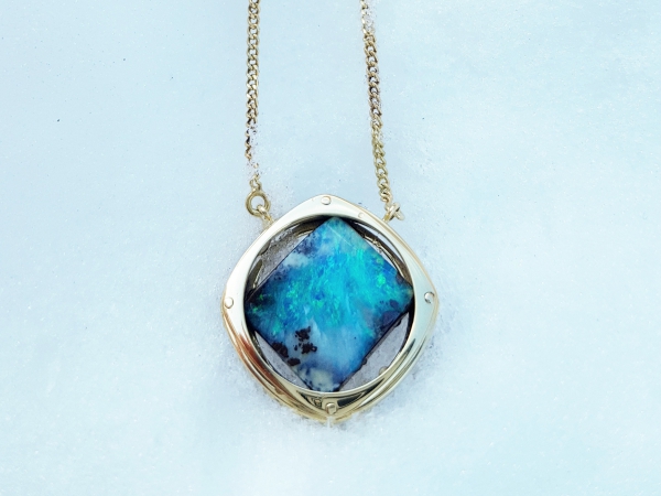 Ce pendentif a été réalisé sur commande avec deux alliances en or bicolor, il s’agit d’une transformation de bijoux.